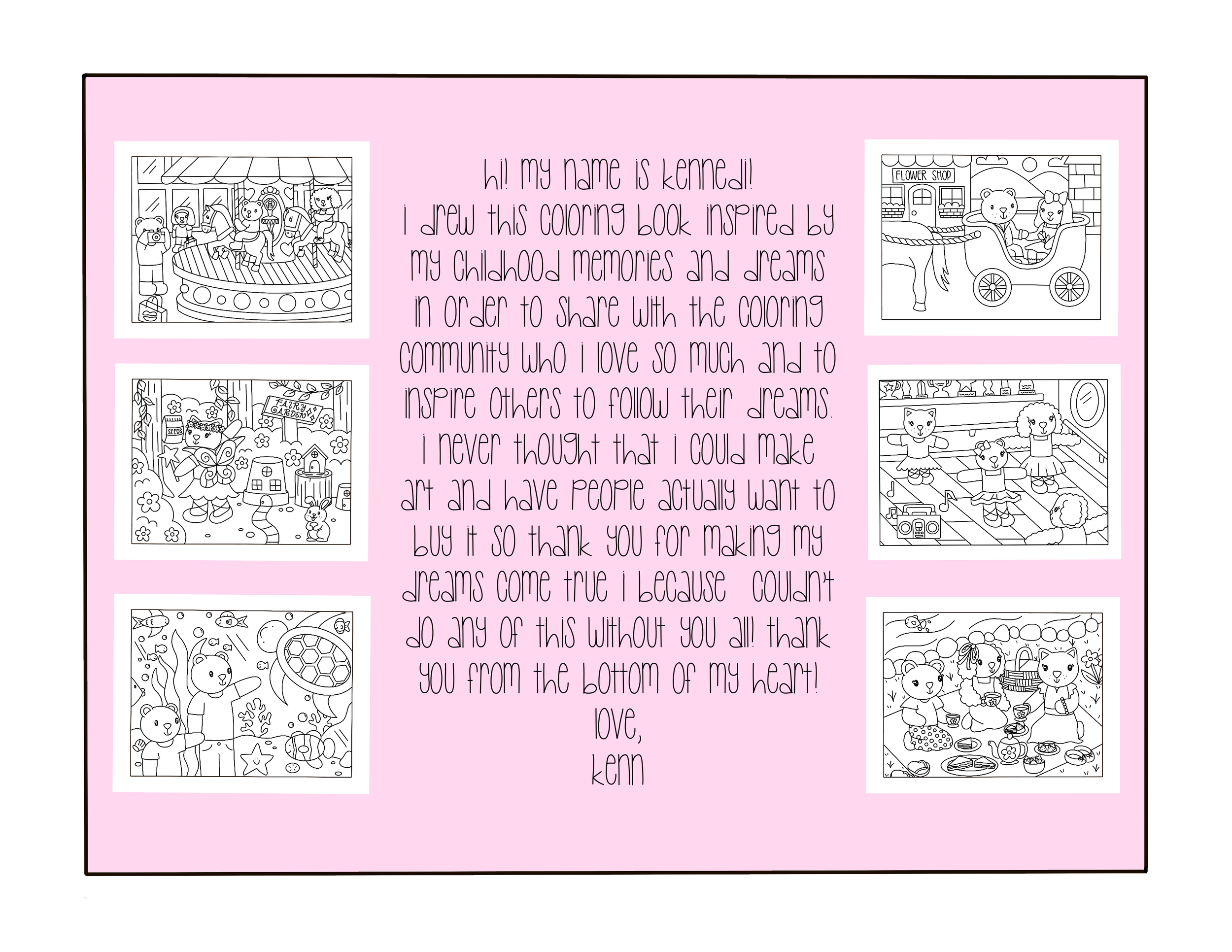 My name is Kennedi Saunders and I design coloring books. I’ve been inspired by many artists, and my childhood memories are my main source of inspiration for most of my pages! I hope you find something you like and get to create something beautiful and unique!